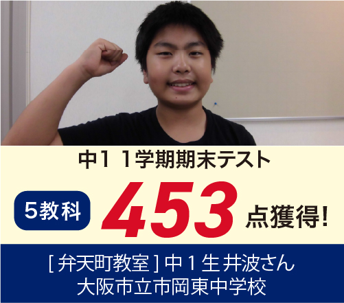 394点→413点 19点UP! 市岡東中学中2