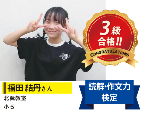 当塾では、子どもたちの学習意欲を高める仕組みの一つとして、各種検定の級取得を目標とした目標達成型進学指導を掲げています。検定の合格を勝ち取るために努力を重ねる中で、「やればできる」という自信や、「やってみよう」といった向上心の育成を大切にしています。