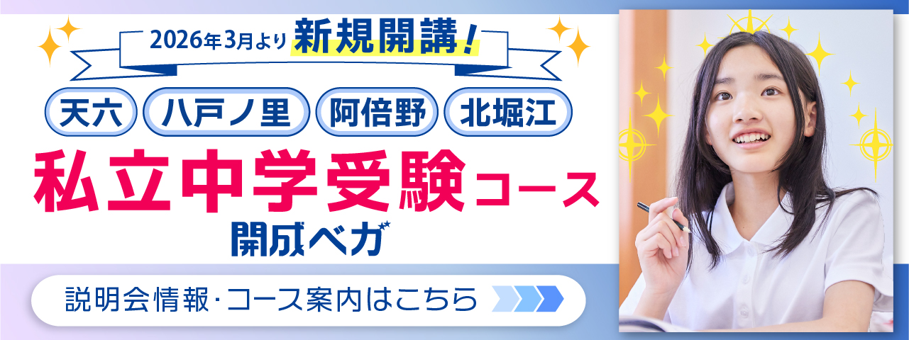 ■2026年3月より私立中学受験コース「ベガ」(新小5生対象)が八戸ノ里教室に開講!