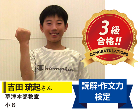 当塾では、子どもたちの学習意欲を高める仕組みの一つとして、各種検定の級取得を目標とした目標達成型進学指導を掲げています。検定の合格を勝ち取るために努力を重ねる中で、「やればできる」という自信や、「やってみよう」といった向上心の育成を大切にしています。