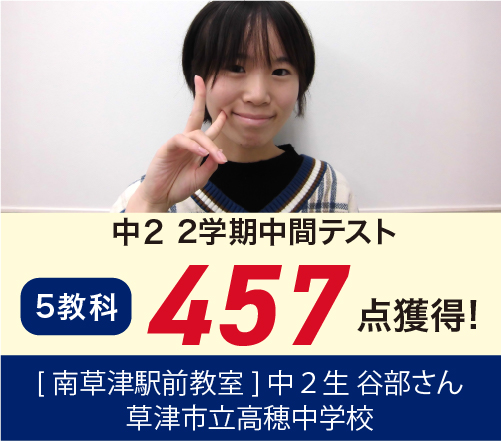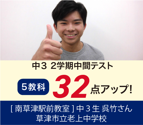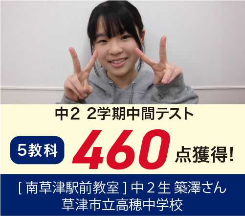 また、実績においても南草津駅前教室より、毎年膳所・彦根東・石山・守山に合格者を20名前後輩出いたしております。ほとんどの生徒が入塾当初の成績を大きく向上させて第1志望合格合格を掴みとっております。