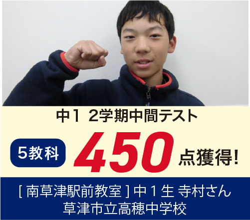 → 2年1学期期末5科451点中3 2年2学期末5科404点