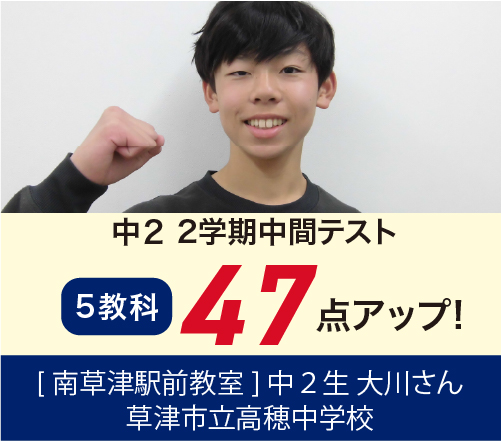開成教育セミナー南草津駅前教室では、定期テスト直前の土曜日に定期テスト対策授業、日曜日に定期テスト対策勉強会を実施いたします。