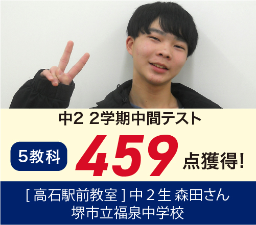 中2生 5科480点以上and数学100点達成!(福泉中)さあ開成で成績アップしよう!
