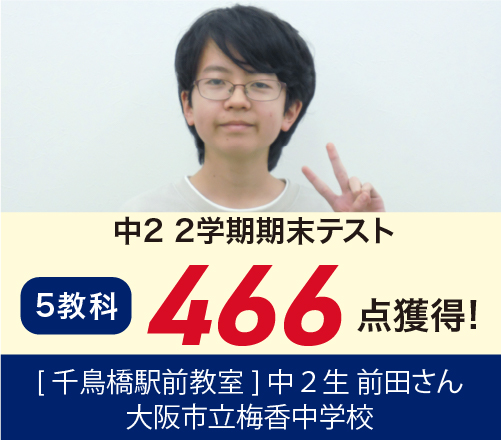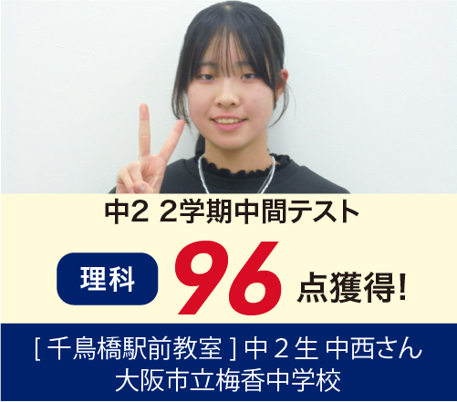 →中2 一学期中間テスト(5科)175 点 up!■大阪市立中学校1年 Hさん