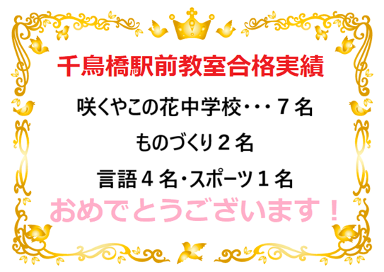 咲くやこの花中学校 過去最高実績 7名合格!!