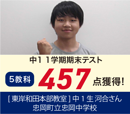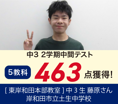 5科合計の塾内生徒平均:前回より+20点③中3【土生中、桜台中、久米田中】