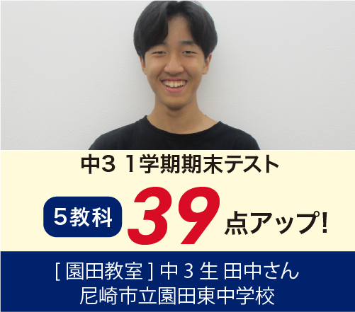 中2学年末→1学期期末で5教科39点アップ!