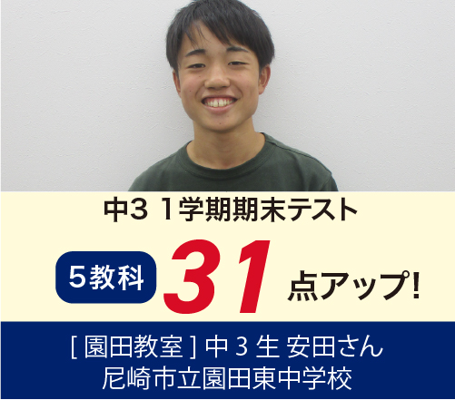 中2学年末→1学期期末で5教科31点アップ!