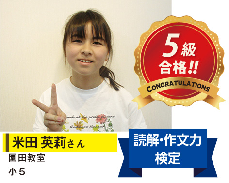 当塾では、子どもたちの学習意欲を高める仕組みの一つとして、各種検定の級取得を目標とした目標達成型進学指導を掲げています。検定の合格を勝ち取るために努力を重ねる中で、「やればできる」という自信や、「やってみよう」といった向上心の育成を大切にしています。