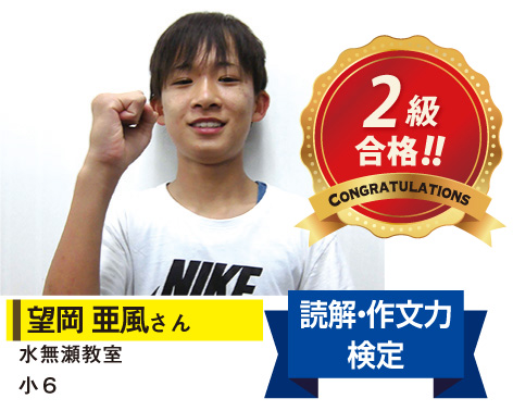 当塾では、子どもたちの学習意欲を高める仕組みの一つとして、各種検定の級取得を目標とした目標達成型進学指導を掲げています。検定の合格を勝ち取るために努力を重ねる中で、「やればできる」という自信や、「やってみよう」といった向上心の育成を大切にしています。