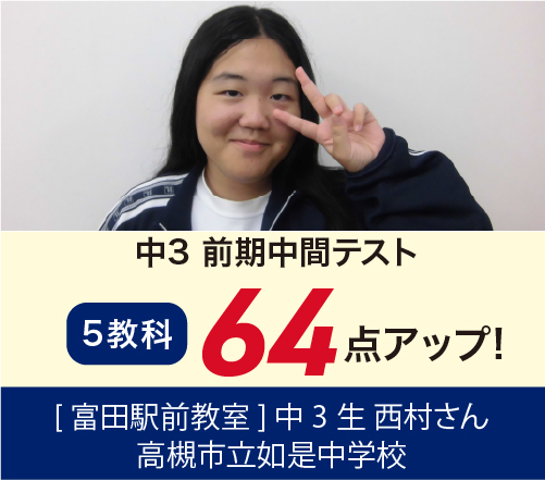 高槻二中 中1 5科 40点以上UP!