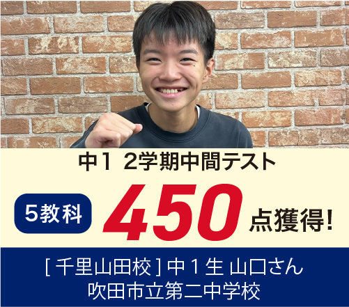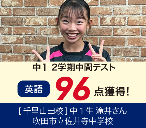 | 在籍生徒 | 小学校・・・南山田小・西山田小・山田第3小・山田第5小・東山田・佐井寺小・東佐井寺小・片山小・高野台小・佐竹台小・岸部第1小・岸部第2小・千里第1小・千里第2小・千里第3小・吹田東小・山田第1小・千里丘小・吹田第3小 など 中学校・・・山田中・西山田中・山田東中・佐井寺中・片山中・吹田第2中・高野台中・古江台中・摂津第3中・千里丘中・吹田第5中・吹田第1中・薫英中 など |