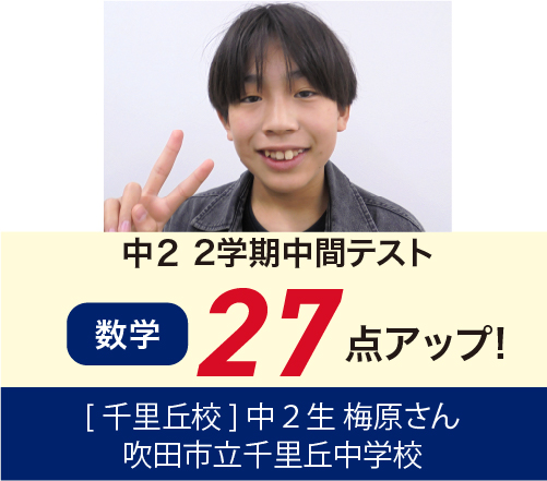 | 在籍生徒 | 小学校・・・山田第二小・千里丘北小・千里丘小・東山田小・別府小 など 中学校・・・千里丘中・山田中・摂津三中・天王中 など |